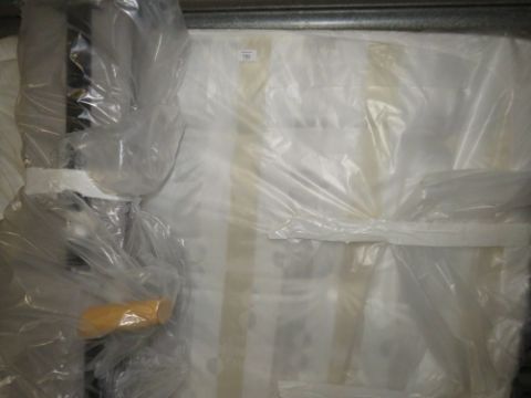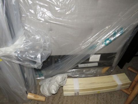 A MODERN UPHOLSTERED DOUBLE BED FRAME AND MATTRESS - NOT CHECKED