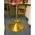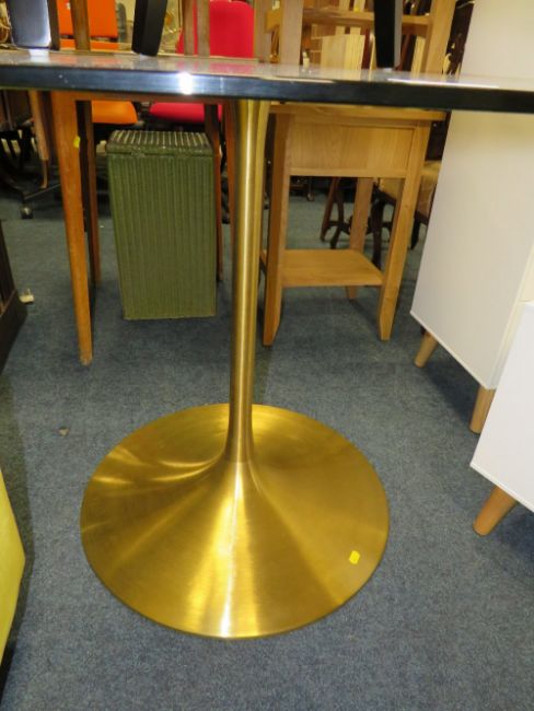 A MODERN CIRCULAR DIVORCEE GLASS TOPPED TABLE WITH ONE UPHOLSTERED CHAIR