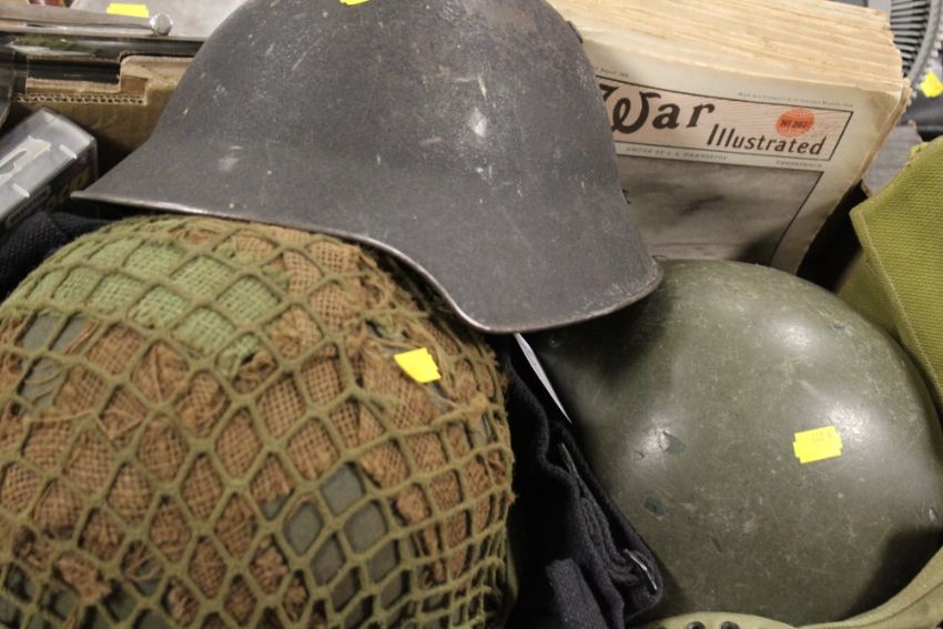A QUANTITY OF MILITARY HELMETS ETC TO INC SWISS M1918 COMBAT, NETHERLANDS 1980s ETC