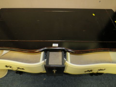 A MODERN CREAM AND BLACK SHAPED SIX DRAWER CHEAT AND A PAIR OF MATCHING BEDSIDE CHESTS (3)