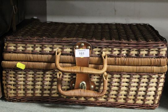 A WICKER PICNIC HAMPER SET & CONTENTS