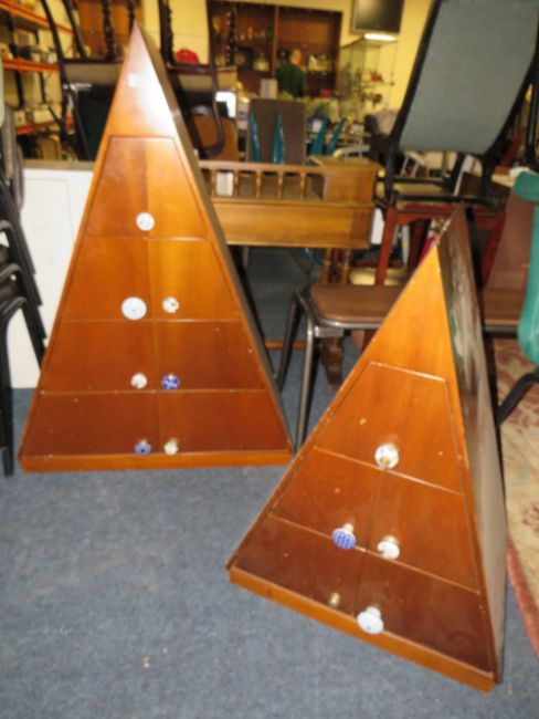 TWO MODERN TRI-ANGULAR MULTI- DRAWER CHEST H-112 CM (TALLEST) (2)