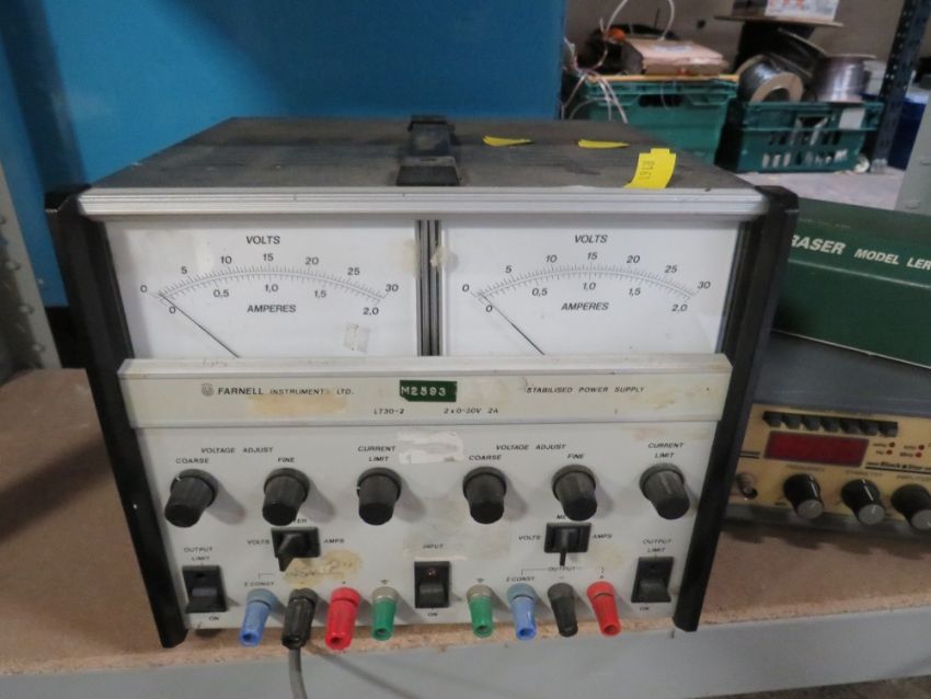 A SELECTION OF ELECTRICAL TEST EQUIPMENT TO INCLUDE FARNELL POWER SUPPLY JUPITER FREQUENCY COUNTER, EPROM ERASER, DIGITAL MICROSCOPE, DIANSU 982 GLUE DROPPER DISPENSER AND SIGNAL GENERATOR