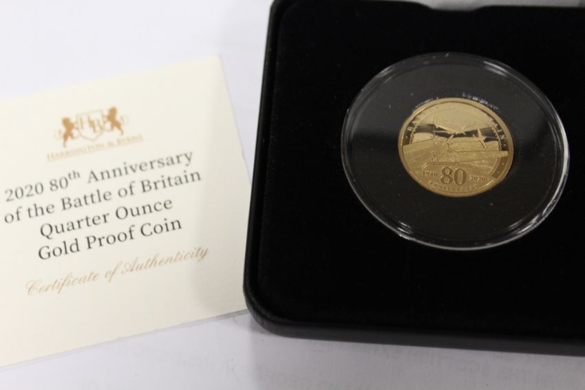 A 2020 80TH ANNIVERSARY OF THE BATTLE OF BRITAIN QUARTER OUNCE GOLD PROOF COIN IN BOX WITH CERTIFICATE