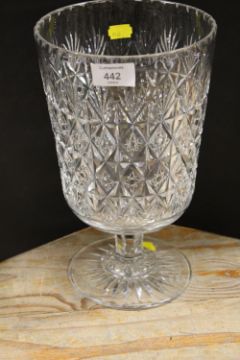 A LARGE CUT GLASS FOOTED VASE