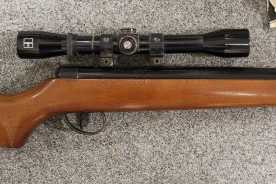 A VINTAGE BOXED BSA 2.2 AIR RIFLE WITH SCOPE AND PELLETS