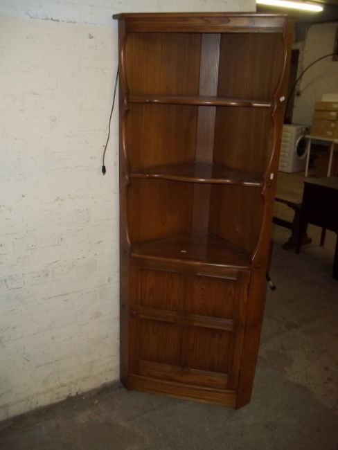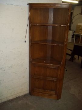 AN ERCOL CORNER DISPLAY CABINET