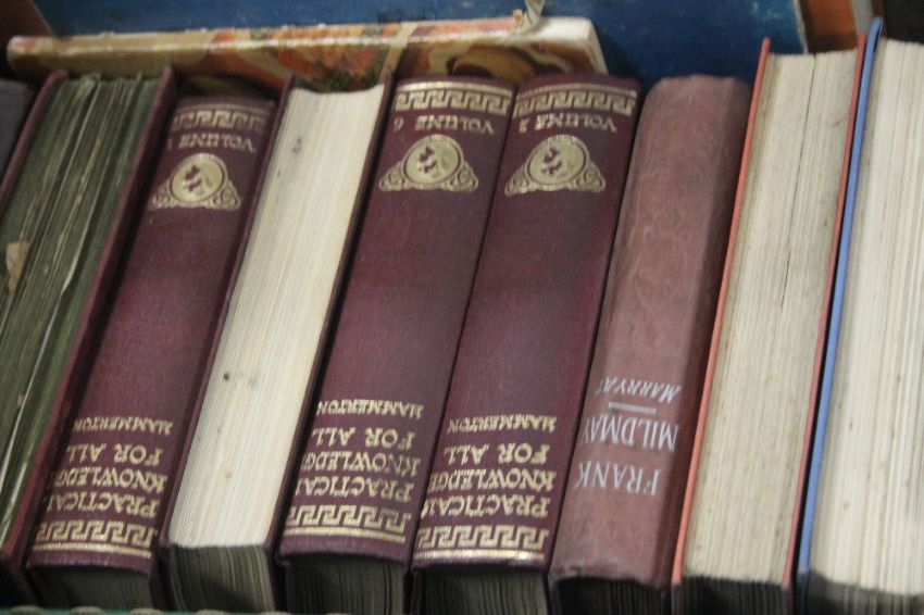 TWO TRAYS OF VINTAGE HARDBACK BOOKS TO INCLUDE A BIBLE (TRAYS NOT INCLUDED)