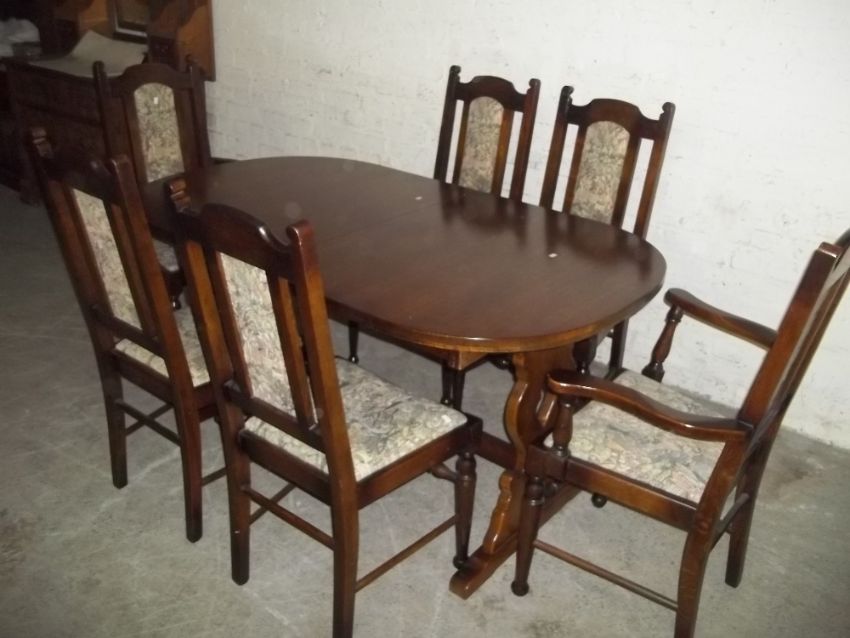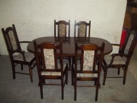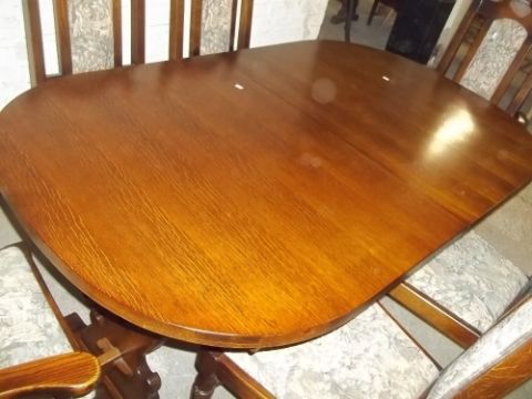 A SOLID OAK EXTENDING DINING SET, TABLE AND 6 CHAIRS TO INCLUDE 2 CARVERS BY OLDE COURT LTD
