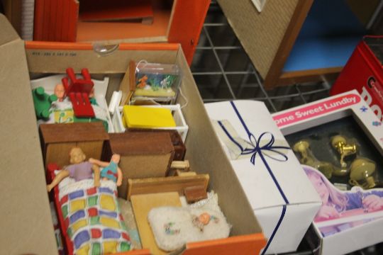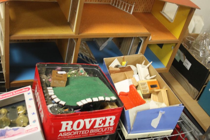 A DOLLS HOUSE TOGETHER WITH A LUNDBY CAR , TO INCLUDE OTHER FURNITURE AND LUNDBY ITEMS