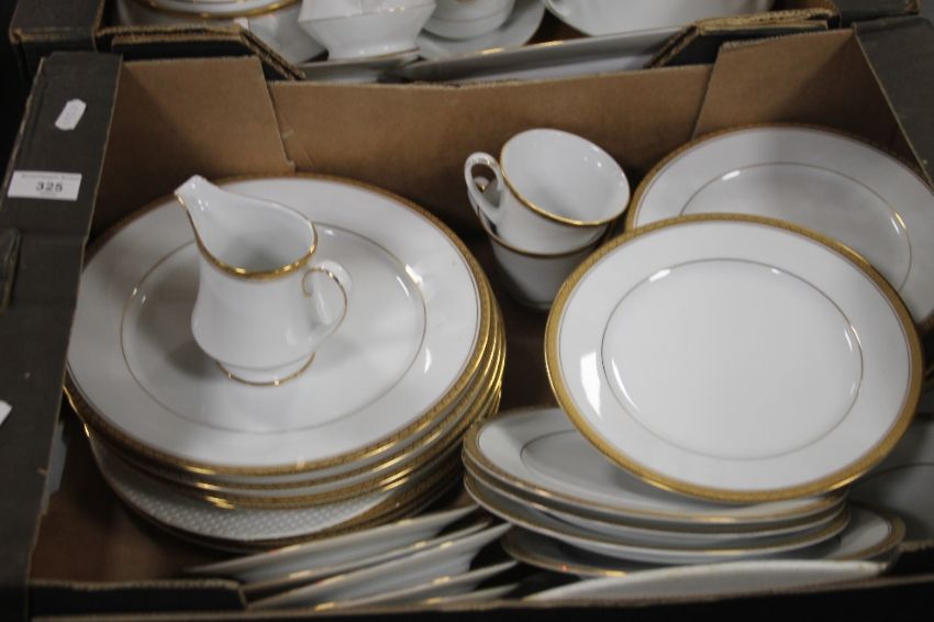 TWO TRAYS CONTAINING NORITAKE DINNER WARE TO INCLUDE TUREENS , MEAT PLATE, DINNER PLATES , SALAD PLATES, CUPS , BOWLS ETC