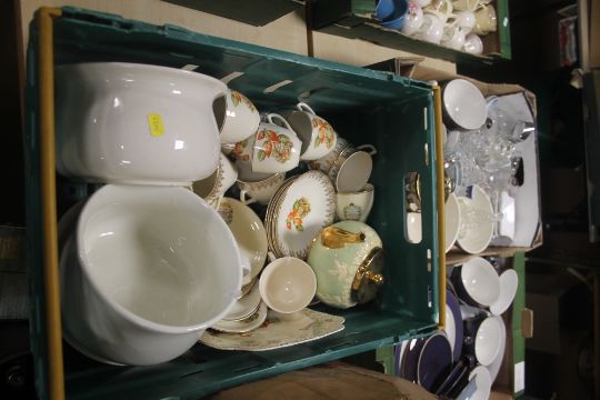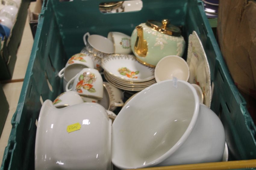 TRAY CONTAINING A PART LUXOR WARE TEA SET , A GIBBSONS TEAPOT ( TRAY NOT INCLUDED )