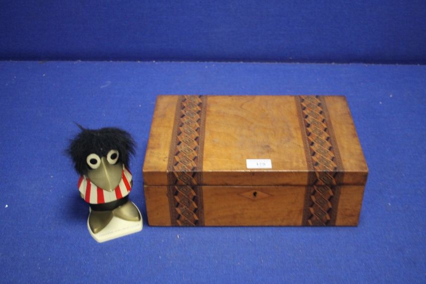 AN UNUSUAL TSB MONEY BOX, A WRITING SLOPE A/F, A QUANTITY OF JARS ETC