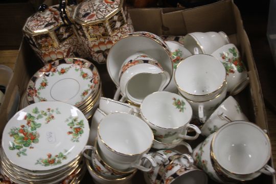 TWO TRAYS OF CHINA/CERAMIC ITEMS TO INCLUDE PART TEA SETS, TEA/COFFEE/SUGAR SET ETC( TRAYS NOT INCLUDED