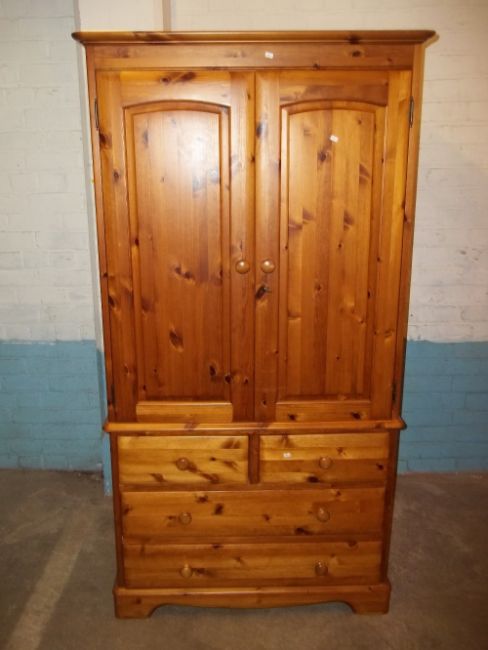 A SOLID PINE DOUBLE MANS WARDROBE WITH DRAWERS IN DUCAL STYLE