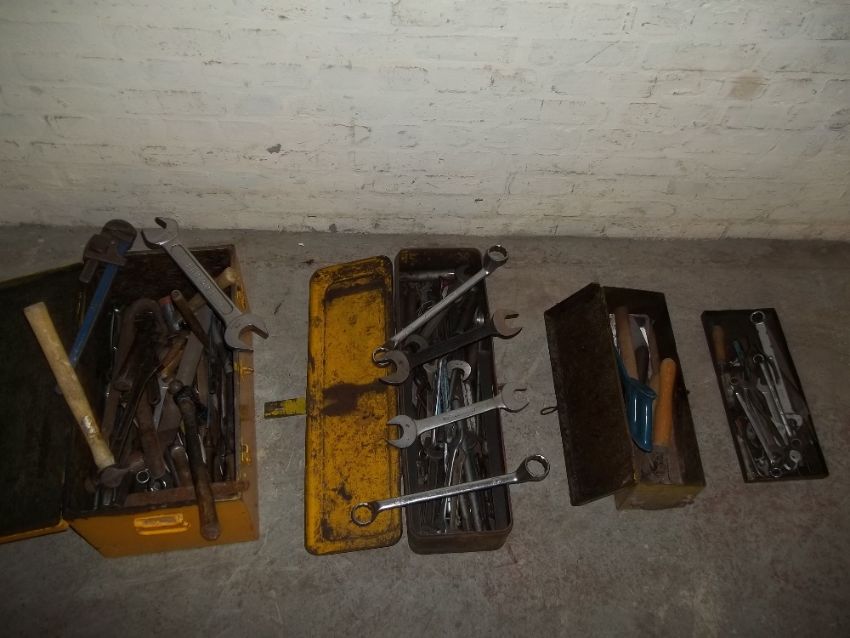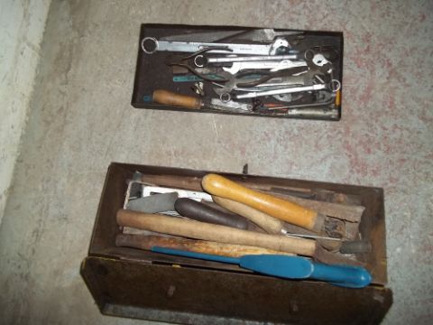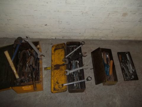 THREE TOOL BOXES OF TOOLS AND 2 BOTTLE JACKS