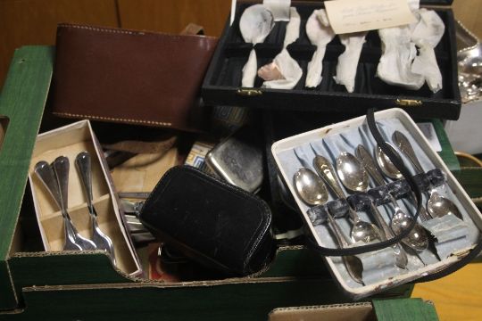 A BOX OF COLLECTABLES TO INCLUDE CAMERAS, CUTLERY, RAZORS ETC