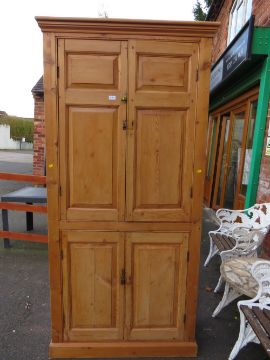 AN ANTIQUE PINE LARGE FOUR DOOR CUPBOARD H-212 W-102 CM