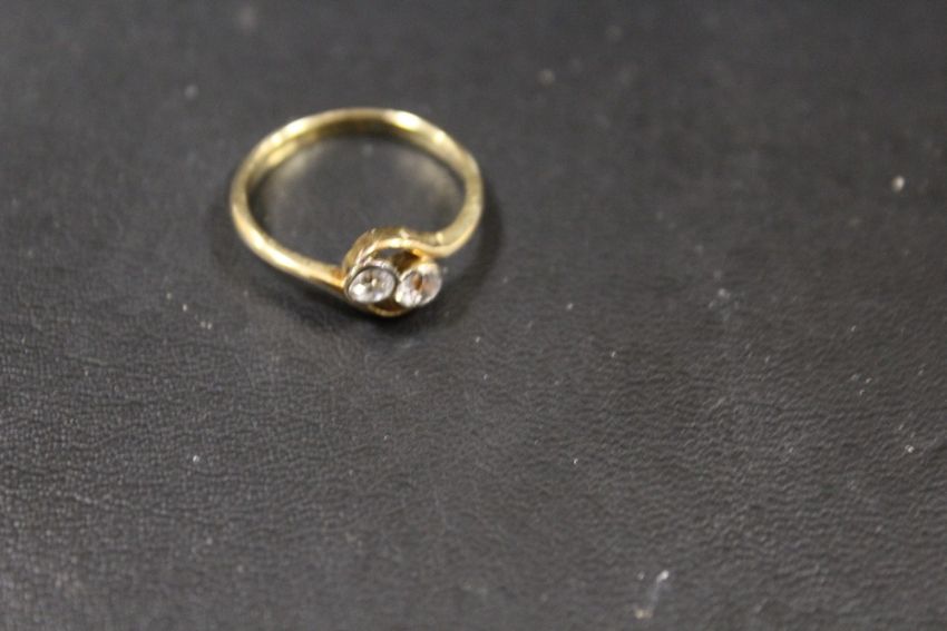 AN 18CT GOLD RING SET WITH TWO WHITE STONES - APPROX WEIGHT 2.4 G