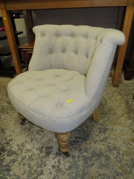 A MODERN LOW UPHOLSTERED BEDROOM CHAIR