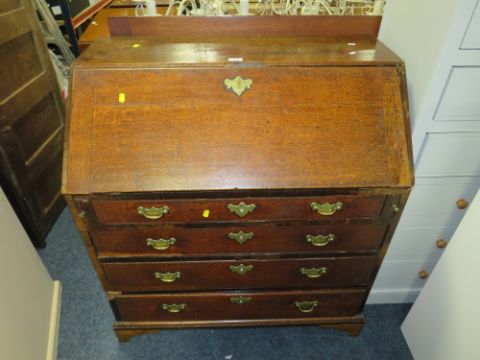 A GEORGIAN OAK BUREAU W-92.5 CM