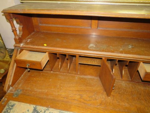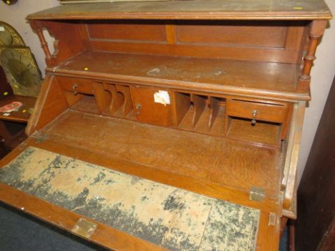 A LARGE CARVED OAK BUREAU H- 126 W-122 CM