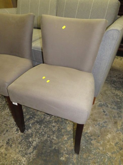 A PAIR OF MODERN UPHOLSTERED BEDROOM CHAIRS WITH PATTERNED BACKS