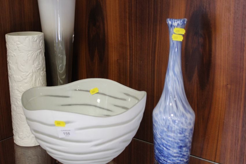 A SELECTION OF MODERN VASES PLUS A LARGE DESIGNER STYLE GLASS BOWL