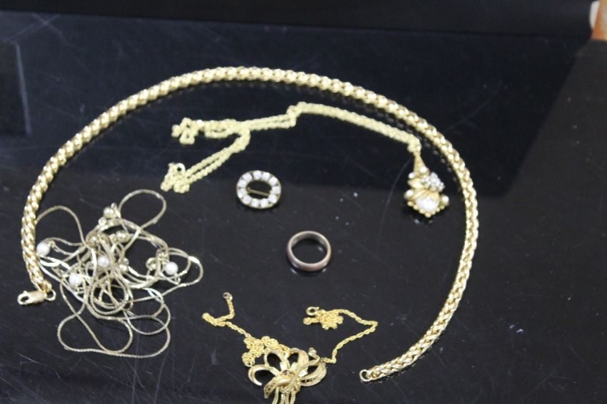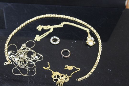 A COLLECTION OF YELLOW METAL MODERN JEWELLERY TO INCLUDE TWO PENDANT NECKLACES, ETC