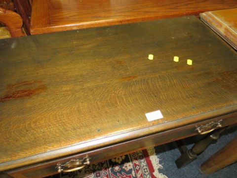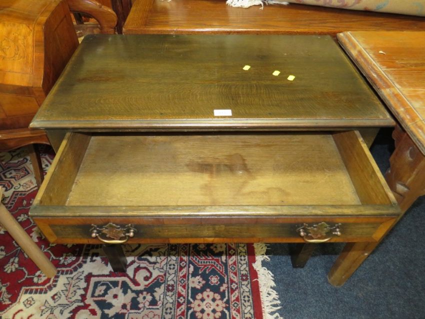 AN OAK AND CROSSBANDED SINGLE DRAWER SIDE TABLE W-80 CM
