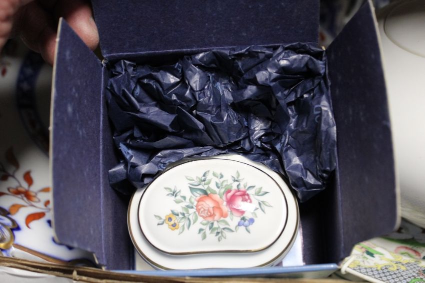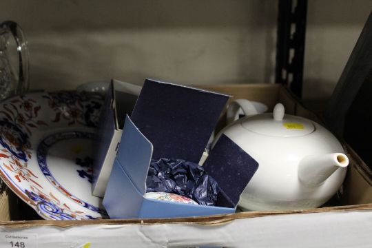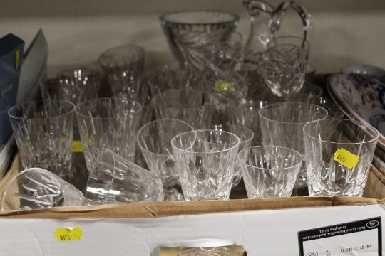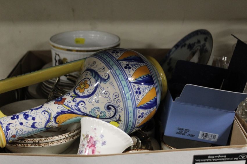THREE TRAYS OF ASSORTED CERAMICS AND GLASSWARE TO INCLUDE ORIENTAL AND WEDGWOOD EXAMPLES