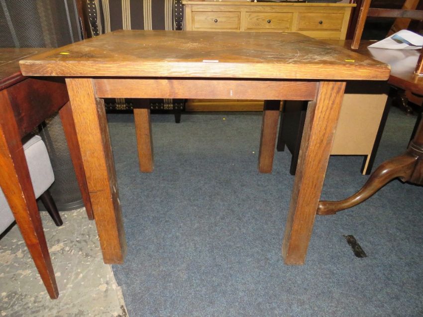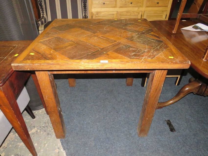 AN UNUSUAL PARQUETRY STYLE DINING TABLE