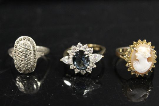 SIX ASSORTED DRESS RINGS TO INCLUDE SILVER EXAMPLES