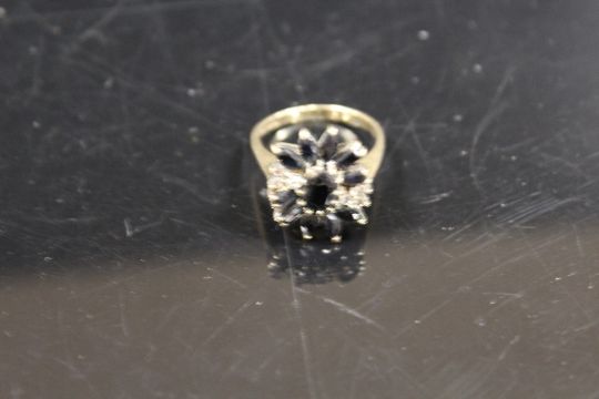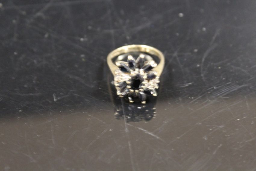 A 9CT GOLD LARGE SAPPHIRE CLUSTER DRESS RING