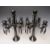A PAIR OF VILLEROY AND BOCH MODERN DARK GLASS FIVE BRANCH CANDELABRA, faceted design with attached decorative lustres, approx H 42 cm