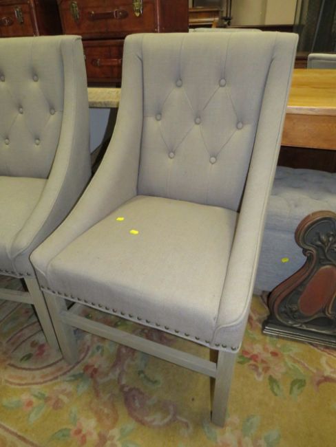 A PAIR OF MODERN UPHOLSTERED BEDROOM CHAIRS