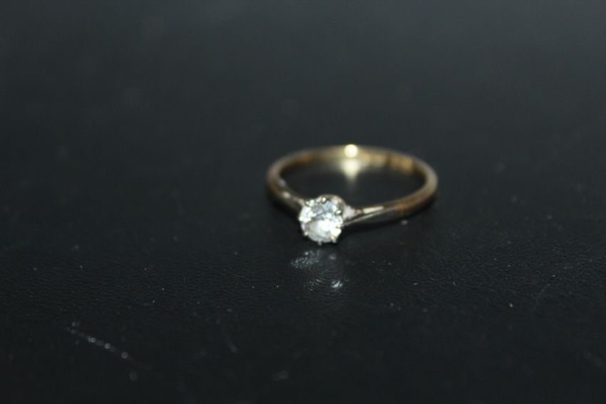 AN 18CT GOLD DIAMOND SOLITAIRE RING, the diamond being of an estimated quarter carat, approx weight 1.9g, ring size N 1/2