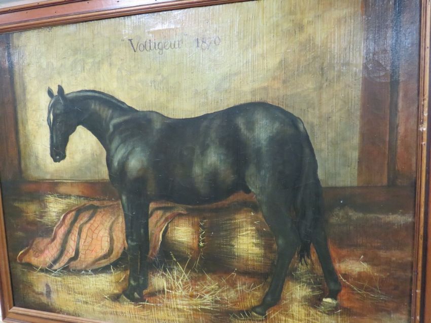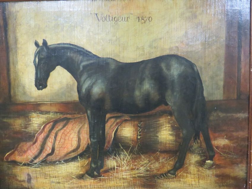 A LARGE 20TH CENTURY OIL OF 'VOLTIGEUR-1870' ON CANVAS 75 X 100 CM