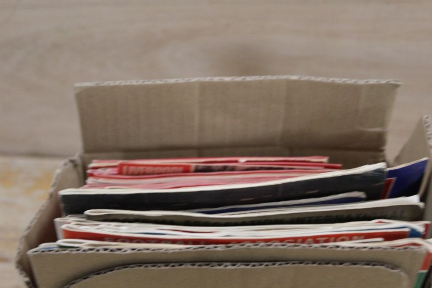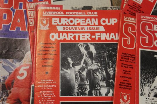 A BOX CONTAINING A QUANTITY OF VINTAGE FOOTBALL PROGRAMMES- THE ONE SIGNED BY BILLY McNEILLIS IS A FACSIMILE SIGNATURE **NOT AN ORIGINAL SIGNATURE**
