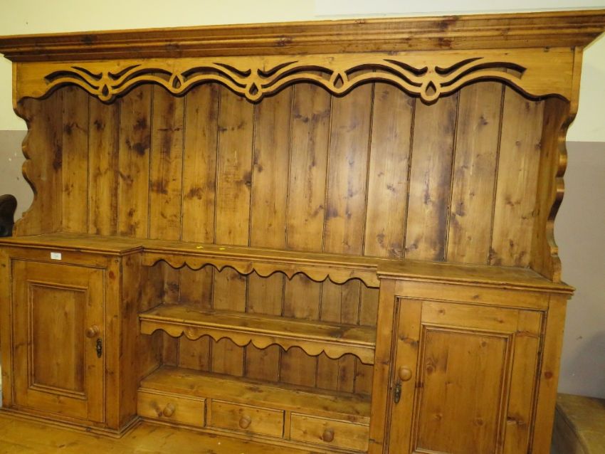 A LARGE PINE FARMHOUSE DRESSER H-219 W-182 CM