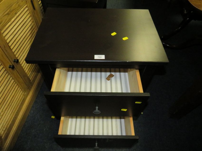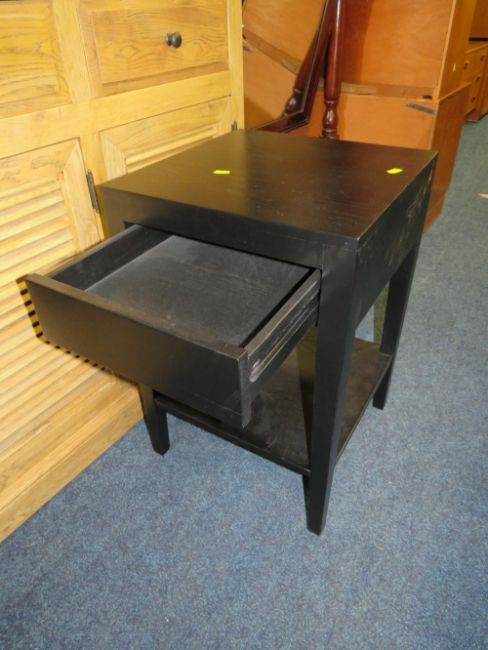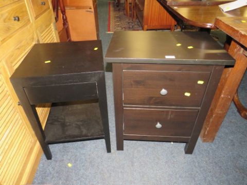 A MODERN BLACK TWO DRAWER BEDSIDE CHEST AND STAND (2)