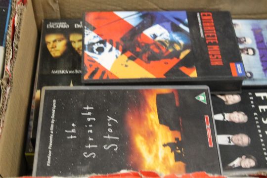 A QUANTITY OF CDS, VIDEO TAPES ETC