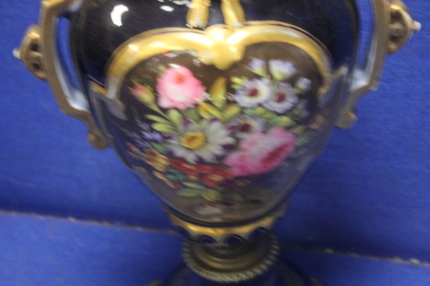 A PAINTED CERAMIC VASE WITH BOTANICAL DECORATION