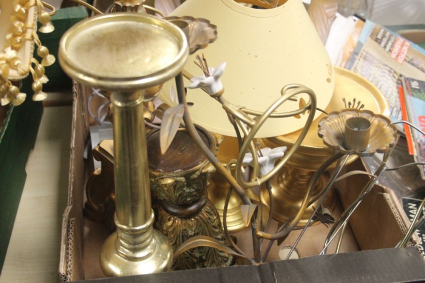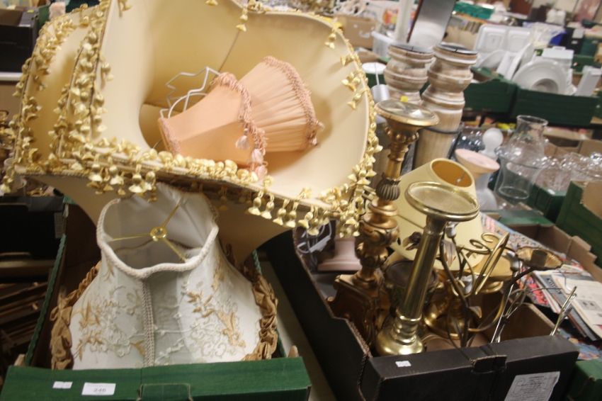 TWO TRAYS OF ASSORTED CANDLE HOLDERS, LAMP SHADES ETC (TRAYS NOT INCLUDED)