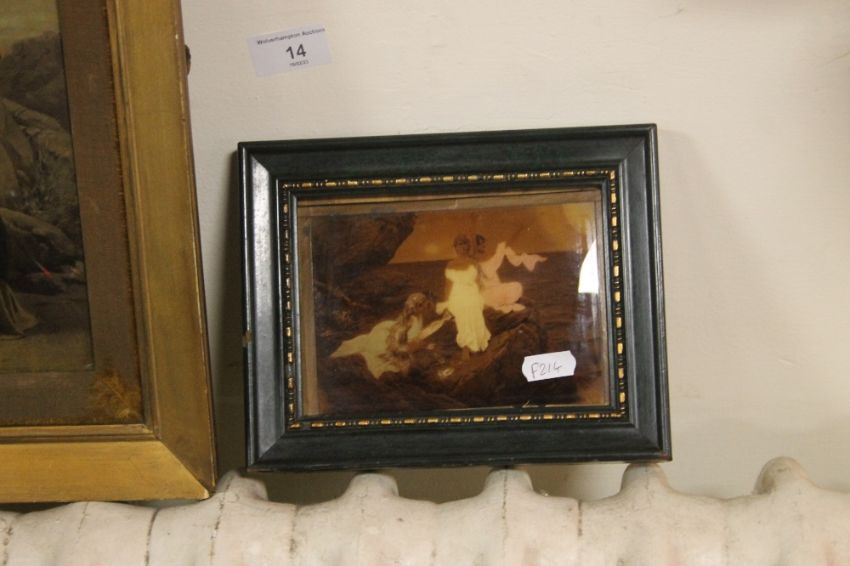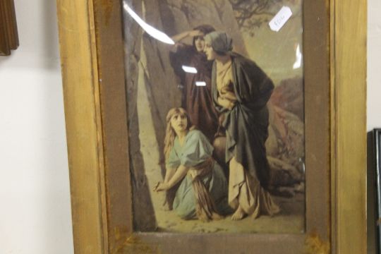 A PAIR OF UNDER GLASS PICTURES 1 WOODEN FRAMED, 1 GILT FRAMED 30 CM X 37 CM 20 CM X 26.5 CM