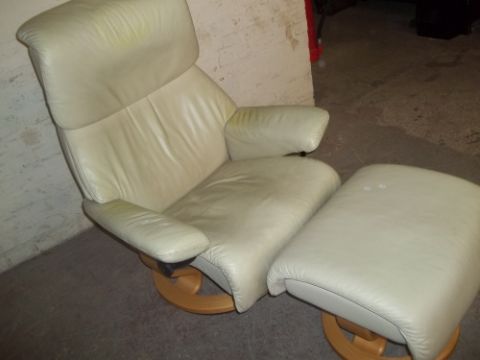 AN EKORNES STRESSLESS SWIVEL CHAIR AND STOOL