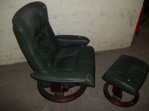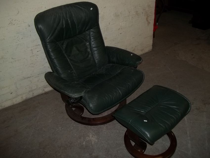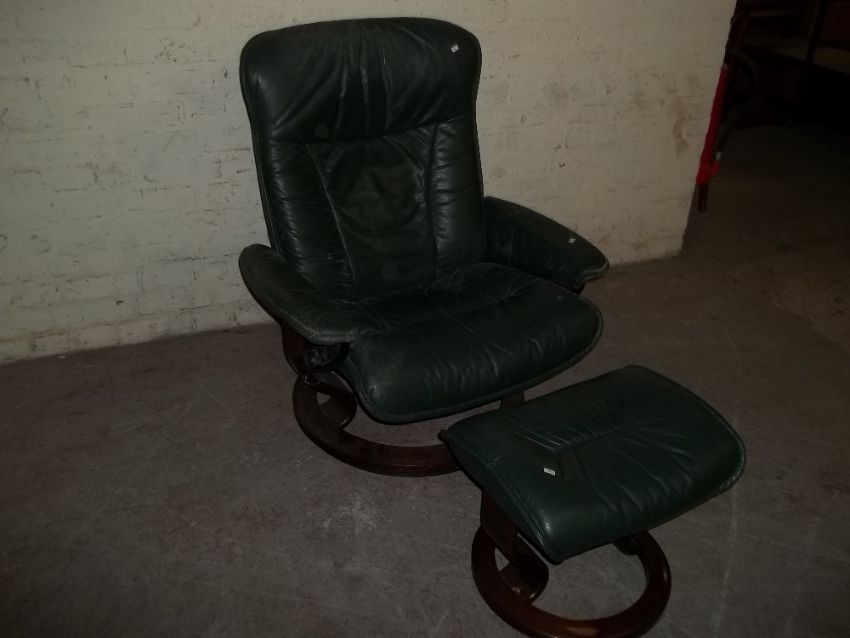 A STRESSLESS EKORNES SWIVEL RECLINER AND STOOL