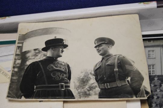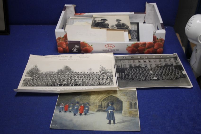 A TRAY OF PHOTOGRAPHS AND EPHEMERA TO INCLUDE BLACK AND WHITE EXAMPLES
