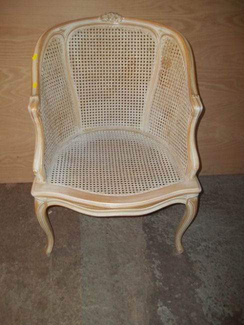 A FRENCH STYLE RATTAN OCCASIONAL CHAIR