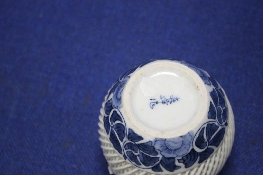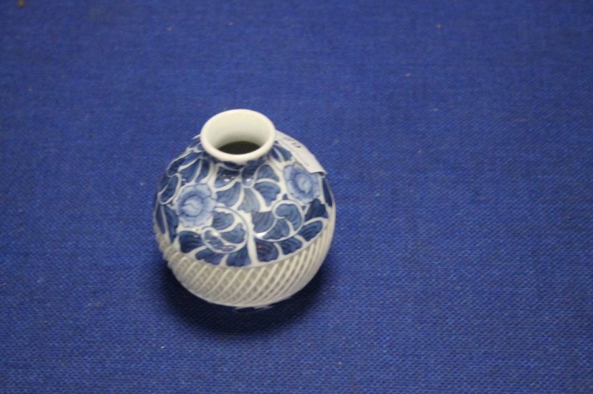 A SMALL ORIENTAL BLUE AND WHITE VASE